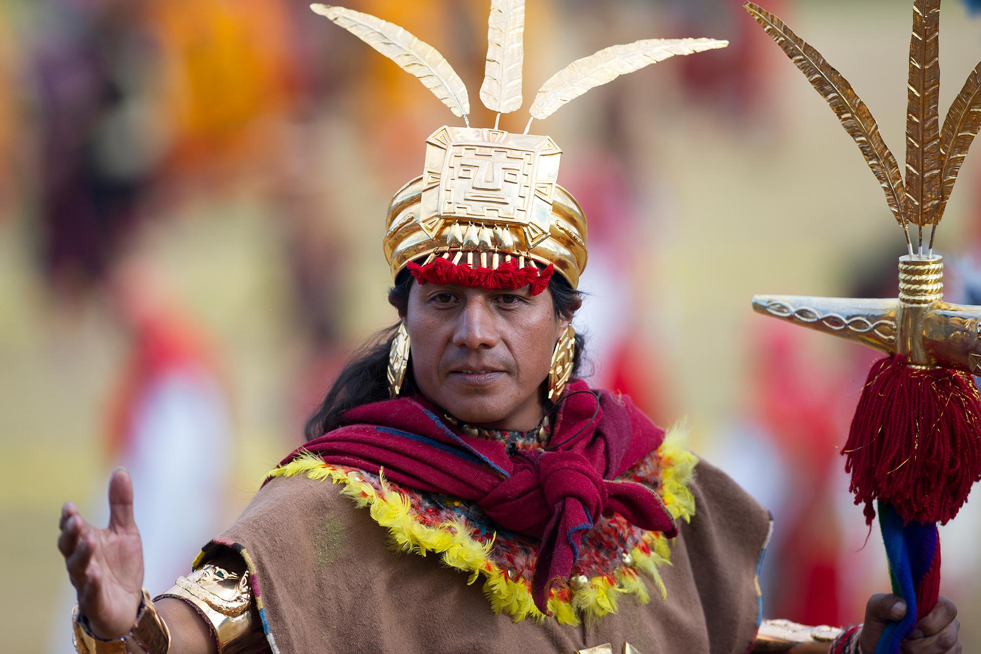 4. Ceremonia en Sacsayhuamán: Una vez que llegan a Sacsayhuamán, se realiza una ceremonia central en un gran escenario montado con piedras. El Sapa Inca lidera los rituales y realiza ofrendas al sol, a la tierra y a otras deidades importantes de la cosmovisión incaica.